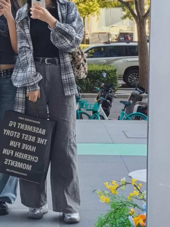 - Design: High-waisted straight-leg cut with wide cargo-style silhouette