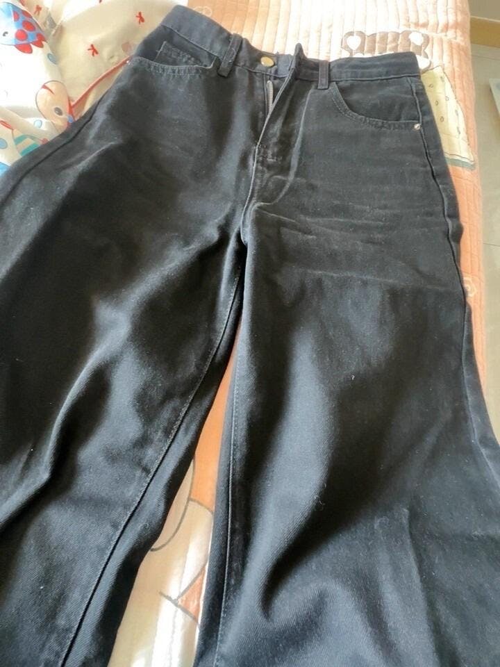 - Design: High-waisted straight-leg cut with a balanced wide silhouette